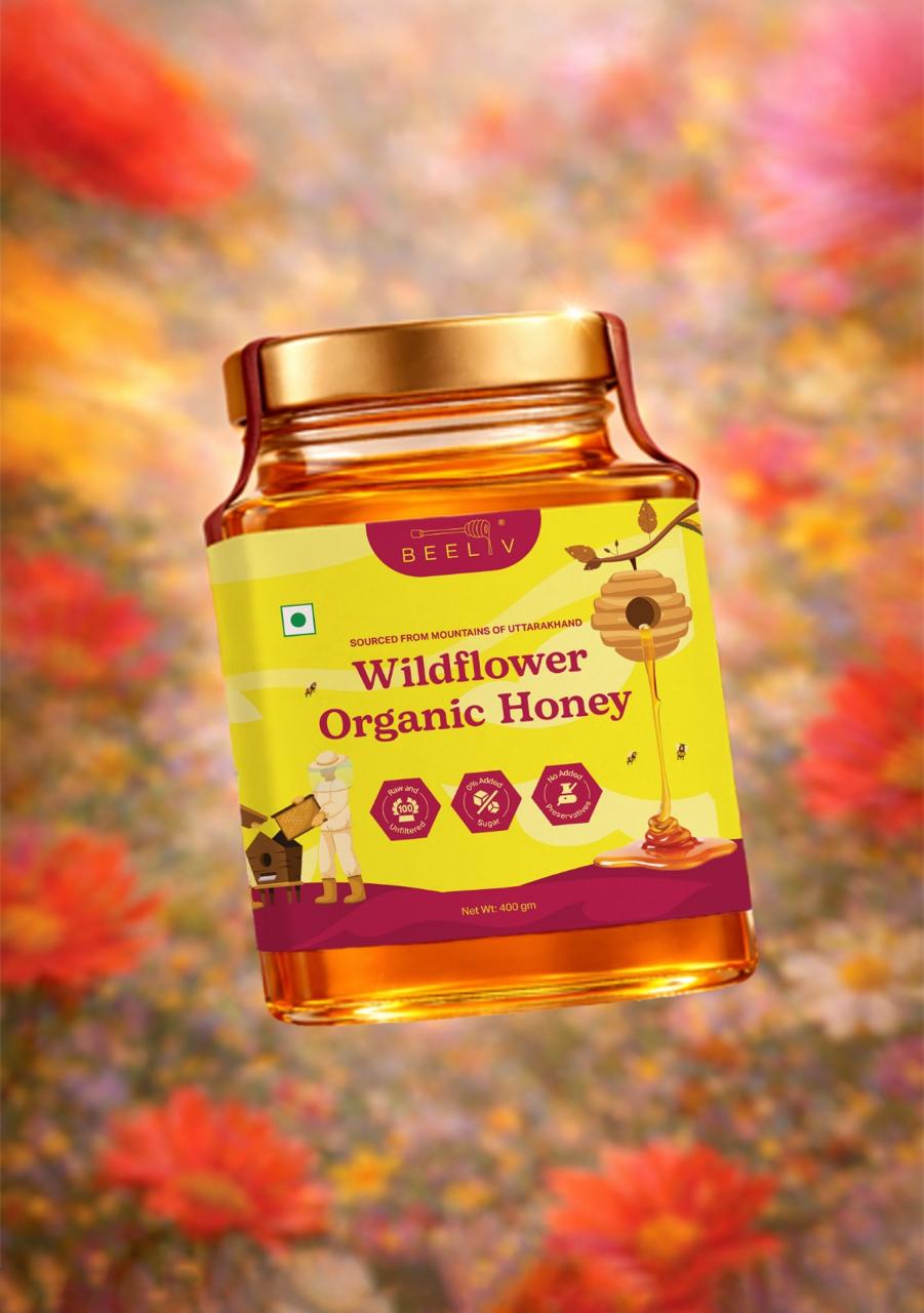 Enjoy the natural goodness of 100% Pure Wildflower Organic Honey, carefully harvested by honey bees from a variety of wild forest flowers in the mountains of Uttarakhand. This honey is raw, unprocessed, and packed with natural nutrients.